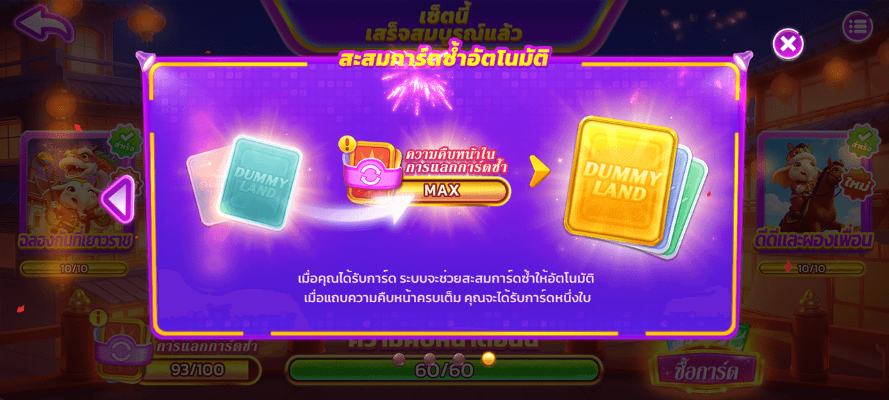 การ์ดที่ได้ซ้ำจะถูกนับเป็น การ์ดซ้ำสะสม อัตโนมัติ